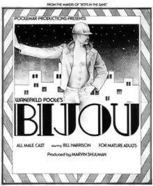 Bijou is an 1972 American pornographic film directed and edited by Wakefield Poole and starring Bill Harrison as a construction worker who witnesses a car accident and discovers an invitation to a club called Bijou in the purse of the victim.