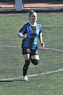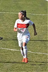 She was called up to the Turkey women's U-19 team to play in the 2016 UEFA Development Tournament,[4] which became champion.[5] She took part at the 2017 UEFA Women's U-19 Championship qualification – Group 10, 2017 UEFA Women's U-19 Championship qualification – Elite round Group 2, 2018 UEFA Women's U-19 Championship qualification – Group 10 and 2018 UEFA Women's U-19 Championship qualification – Elite round Group 4 matches.[1][6] She appeared also in friendly matches.[2][7][8][9]