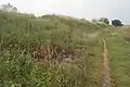 Fortress hill with the remains of a 1000 year old rampart. National historical monument.