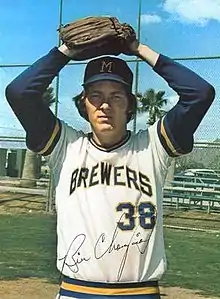 Before his big league debut, in 1969, Champion was already a two-time Minor League Baseball (MiLB) earned run average (ERA) league leader: Huron Phillies, Northern League (1965); and Tidewater Tides, Carolina League (1968).[1] He was traded along with Don Money and John Vukovich by the Phillies to the Brewers for Jim Lonborg, Ken Brett, Ken Sanders and Earl Stephenson on October 31, 1972.[2]