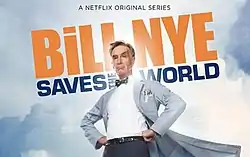 Bill Nye Saves the World is an American television show streaming on Netflix hosted by Bill Nye.[1] The show's byline was, "Emmy-winning host Bill Nye brings experts and famous guests to his lab for a talk show exploring scientific issues that touch our lives",[2] with the series' focus placed on science and its relationship with politics, pop culture, and society.[3] Unlike Nye's previous show Bill Nye the Science Guy which was intended for children, Bill Nye Saves the World is intended for adults (especially those adults who watched Bill Nye the Science Guy when they were children during its original run in the 1990s). As such, some episodes have Nye discuss topics that would be considered inappropriate to mention to minors.