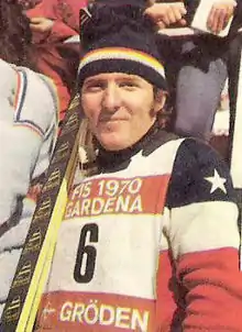At the 1970 World Championships in Val Gardena, Italy, Kidd won the gold medal in the combined and the bronze in the slalom.[14] On winning the gold, he said, "I'd always promised my mom I'd bring home a gold medal." Following the conclusion of the World Championships in mid-February 1970, Kidd retired from the World Cup circuit, and immediately joined the new pro circuit,[15][16] started by former U.S. Ski Team coach (and Kidd's and Heuga's University of Colorado ski coach) Bob Beattie.[17] Kidd won the pro championship the same year, the only racer to hold world titles in the two circuits at once.[18][19] Nagging injuries led to few starts during the 1972 season, and he retired from the pro circuit that fall.[20]