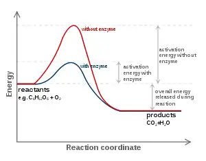 The chemical reactions of metabolism are organized into metabolic pathways, in which one chemical is transformed through a series of steps into another chemical, each step being facilitated by a specific enzyme. Enzymes are crucial to metabolism because they allow organisms to drive desirable reactions that require energy that will not occur by themselves, by coupling them to spontaneous reactions that release energy. Enzymes act as catalysts—they allow a reaction to proceed more rapidly without being consumed by it—by reducing the amount of activation energy needed to convert reactants into products. Enzymes also allow the regulation of the rate of a metabolic reaction, for example in response to changes in the cell's environment or to signals from other cells.