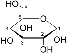 Carbohydrates (or sugar) are molecules with the molecular formula (CH2O)n, with n being the number of carbon-hydrate groups.[45] They include monosaccharides (monomer), oligosaccharides (small polymers), and polysaccharides (large polymers). Monosaccharides can be linked together by glycosidic linkages, a type of covalent bond.[45] When two monosaccharides such as glucose and fructose are linked together, they can form a disaccharide such as sucrose.[45] When many monosaccharides are linked together, they can form an oligosaccharide or a polysaccharide, depending on the number of monosaccharides. Polysaccharides can vary in function. Monosaccharides such as glucose can be a source of energy and some polysaccharides can serve as storage material that can be hydrolyzed to provide cells with sugar.