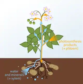 Photosynthesis is a process used by plants and other organisms to convert light energy into chemical energy that can later be released to fuel the organism's metabolic activities via cellular respiration. This chemical energy is stored in carbohydrate molecules, such as sugars, which are synthesized from carbon dioxide and water.[59][60][61] In most cases, oxygen is also released as a waste product. Most plants, algae, and cyanobacteria perform photosynthesis, which is largely responsible for producing and maintaining the oxygen content of the Earth's atmosphere, and supplies most of the energy necessary for life on Earth.[62]