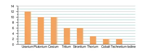 In ocean waters, the presence of tritium (3H), cesium-137 (137Cs), strontium-90 (90Sr), plutonium-239 (239Pu) and plutonium-240 (240Pu) has significantly increased due to anthropogenic causes.[10][11] In soils, technetium-99 (99Tc), carbon-14, strontium-90, cobalt-60 (60Co), iodine-129 (129I), iodine-131 (131I), americium-241 (241Am), neptunium-237 (237Np) and various forms of radioactive plutonium and uranium are the most common radionuclides.[2][8][9]