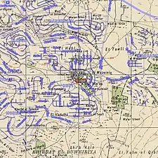 1870s map 1940s map modern map 1940s with modern overlay mapA series of historical maps of the area around Bir Ma'in (click the buttons) | |