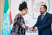 Birtukan Mideksa (Amharic: ብርቱካን ሚደቅሳ; born 27 April 1974) is an Ethiopian politician and former judge who is serving as chairwoman of the National Election Board of Ethiopia (NEBE) since 2018.[2] She was the founder and leader of the opposition Unity for Democracy and Justice (UDJ) party from 2008 to 2010.[3]