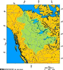 Mackenzie River drainage basin showing Blachford Lake's general position in the Western Canadian Arctic