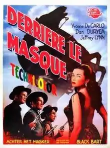 Black Bart is a 1948 American Western film directed by George Sherman and starring Yvonne De Carlo, Dan Duryea as the real-life cowboy bandit Charles Bolles, and Jeffrey Lynn. It was distributed by Universal-International and produced by Leonard Goldstein. It was shot in Technicolor and was also known as Black Bart, Highwayman.[2] The film was written by Luci Ward, Jack Natteford, and William Bowers and was released on March 3, 1948.