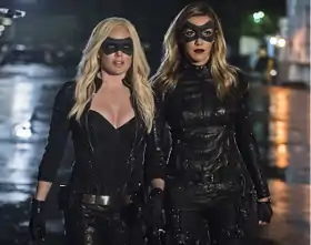 In the series, she wore a long brunette wig, while acting as a controversial conservative columnist and talk-show host for the Daily Planet in Metropolis. By night, she used her metahuman ultrasonic scream to become a vigilante/mercenary. She was initially employed by Lex Luthor to capture the Green Arrow, who she believed to be a terrorist. She was later convinced that Luthor was lying to her, and Oliver asked her to join his team, Justice League.[5] Black Canary helped in the search for Clark at the start of season 8,[6] and agreed the group should disband once their identies were exposed. However, she returned later in the season to help bring down Doomsday.[7]