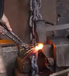 An important development in the early 17th century was the introduction of the slitting mill to the Midlands area. In the Black Country, the establishment of this device was associated with Richard Foley, son of a Dudley nailer, who built a slitting mill near Kinver in 1628.[36] The slitting mill made it much simpler to produce nail rods from iron bar.