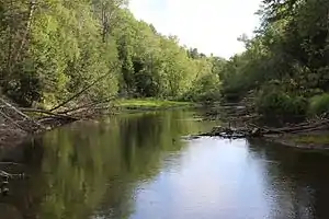 Black River is a 78.8-mile-long (126.8 km)[2] river in the U.S. state of Michigan, flowing mostly northward through four Northern Michigan counties: Otsego, Montmorency, Presque Isle, and Cheboygan. The Black River flows into the Cheboygan River at 45°36′13″N 84°27′47″W, just south of the city of Cheboygan, and then into Lake Huron. The main branch of the Black River rises in Charlton Township in east-central Otsego County near the boundary with Montmorency County.[1] The East Branch of the Black River rises less than a mile to the east in Vienna Township in Montmorency County. The other major tributaries, Canada Creek, Tomahawk Creek and the Rainy River all rise in northern Montmorency County.