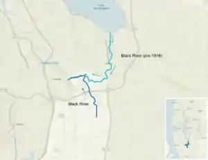 The Black River is a tributary of the Duwamish River in King County in the U.S. state of Washington. It drained Lake Washington until 1916, when the opening of the Lake Washington Ship Canal lowered the lake, causing part of the Black River to dry up. It still exists as a dammed stream about 2 miles (3.2 km) long.[1]