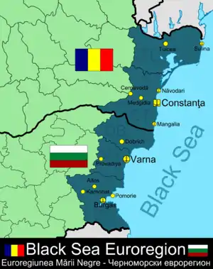 Black Sea Euroregion (Bulgarian: Черноморски еврорегион, transcript. Chernomorski evroregion, Romanian: Euroregiunea Mării Negre) is a seaside Euroregion, located in Bulgaria and Romania.