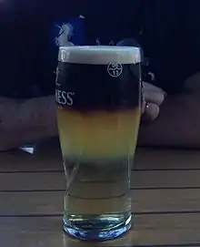 ![]() A layered Black Velvet cocktail with the stout on the top | |