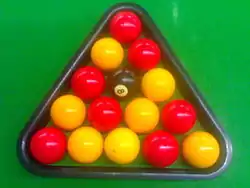 Blackball pool (sometimes written black ball), also known as English pool, English eight-ball or simply reds and yellows, is a pool game originating in the United Kingdom and popularized across Europe and The Commonwealth, such as Australia and South Africa. In the UK and Ireland it is usually called simply "pool". The game is played with sixteen balls (a cue ball and fifteen usually unnumbered object balls) on a small (6 ft × 3 ft or 7 ft × 3 ft 6 in) pool table with six pockets.