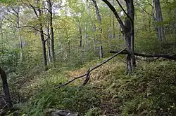The site was discovered during the early 1970s as part of a comprehensive survey of the national park. It is one of fifteen sites that the survey found along Paine Run,[3]: 135 a group that also includes the Paine Run Rockshelter and the unnamed 44-AU-154.[3]: 136 Located near the stream's source at Blackrock Springs,[3]: 90 the site measures approximately 150 by 60 metres (490 ft × 200 ft),[3]: 89 although the survey concluded that it was only about 5 centimetres (2.0 in) deep.[3]: 198 It was occupied during an exceptionally long period of time, beginning before 7000 BC and continuing until after 1000 BC;[3]: 167 among the earliest artifacts found at Blackrock Springs is a St. Albans-related projectile point, and the most intensive uses appear to date from the middle to late Archaic period.[3]: 92 This chronological distribution, together with the uneven physical distribution of artifacts (most were found in several small clusters, rather than being spread evenly around the site)[3]: 104 and the nature of the artifacts found (approximately 98% of the three thousand items catalogued were pieces of locally obtained quartzite), led investigators to conclude that millennia of tribesmen in the Shenandoah Valley and the Piedmont used the site as a base camp for occasional hunting and gathering on the mountainside.[3]: 168