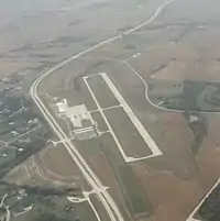 The original Blair Municipal Airport (FAA LID: NE07/83Y) north of Blair opened between 1938 and 1941. In 1996 the city of Blair purchased the privately owned Eagle Airfield (FAA LID: K46) which became the site of the present Blair Municipal Airport.[2] Eagle Airfield was renamed, and extensive construction replaced the original narrow runway, removed a grass cross-runway, and added new tarmacs and hangars.[2] The original airport location was demolished and turned into a golf course by 1999.[3]
