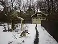 Arbor and garage; the arbor has been rebuilt following the original design.