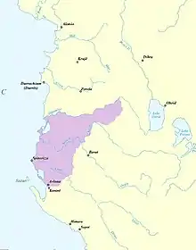 After Dušan's death on December 20, 1355, Blasius Matarango established himself as a semi-autonomous prince north of Valona in the region Myzeqe (Karavasta) between the lower reaches of the rivers Shkumbin and Seman. He recognized the suzerainty of the Simeon Uroš Palaiologos, who in 1358 served him the high court dignity of a for his loyal vassal Sebastokrator, with which at the same time the legitimacy of his rule over the Albanian population was further enhanced.[2]