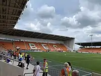 ![]() The current stadium, looking north, as visitors Fulham kicked off the first-ever Premier League match at Bloomfield Road on 28 August 2010 | |