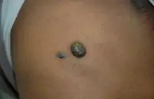 BRBNS is a venous malformation,[6] formerly, though incorrectly, thought to be related to the hemangioma. It carries significant potential for serious bleeding.[7] Lesions are most commonly found on the skin and in the small intestine and distal large bowel. Other organs with the lesions can also be found on the central nervous system, liver, and muscles.[8] It usually presents soon after birth or during early infancy.[8][9]