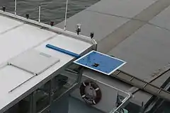 A blue sign or blue board is used by inland waterways vessels within the Trans-European Inland Waterway network when performing a special manoeuvre or passing on the starboard side. On navigable waterways vessels normally pass each other on the port-side, so the display of the blue sign and flashing white light signal intention to pass each other on the starboard-side.[1] This process is known as blue boarding or historically blue flagging.[2][3][4][5]
