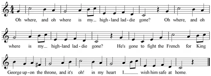 - He dwells in merry Scotland where the bluebells sweetly smell,