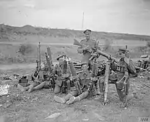 After the fight at Mœuvres, 52nd (L) Division was given a reduced role in the Battle of the Canal du Nord on 27 September. 157th Brigade advanced south from Mœuvres with tank and air support to clear both sides of the canal and Hindenburg Line. 7th HLI (commanded by Major C. Gibb) followed 6th HLI, dropping companies off in the dry brick-sided canal bed to mop up machine gun positions, and then supported 156th Bde onto its objective with rifle fire.[21][65][66] From 7 to 30 September, during the fighting at Mœuvres and the attack at the Canal du Nord, 7th HLI lost 5 officers and 13 ORs killed and died of wounds, 1 officer and 99 ORs wounded, and 8 ORs missing. By now the battalion's strength was down to about 400 men.[67]