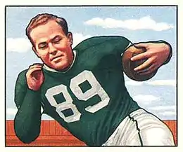 ![]() Kelly on a 1950 Bowman football card | |