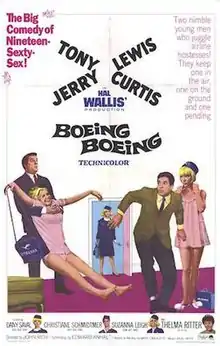 Boeing (707) Boeing (707) (alternately titled Boeing Boeing) is a 1965 American bedroom farce comedy film based on the 1960 French play Boeing-Boeing and starring Tony Curtis and Jerry Lewis. Released on December 22, 1965, it was the last film that Lewis made for Paramount Pictures, which had produced all of his films since My Friend Irma (1949). It was remade in Malayalam in 1985 with the same title.