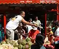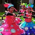 The event starts first during the morning from 12am at Allen Gardens, through Brick Lane and ends in Weavers Fields. This is known as the Grand Parade, where there are women and children dressed in colourful traditional clothes and masks. There will also be musicians or drummers, including dancers and also the leaders from the community. During the 2008 Mela, a great emperor was leading the parade symbolising the traditional landlord (zamindar) of the Indian subcontinent, along with a tiger, an elephant on wheels, rickshaws, and many others.[1] Brick Lane, which is home to many Bangladeshi-owned Indian restaurants, serves curry along the streets for the visitors, with traditional Bengali cuisine meals, and cooked by prominent chefs from Bangladesh.[2]