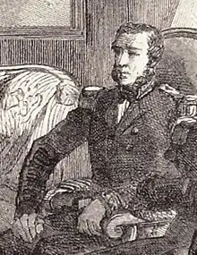 The Bakufu was led by Ogasawara Nagamichi, governing in the absence of the Shōgun Tokugawa Iemochi who was in the Imperial capital of Kyoto.[6] Eager to avoid trouble with European powers, Ogasawara negotiated with France and Great Britain on 2 July 1863, on board the French warship Sémiramis, apologized and paid the indemnity to the British authorities. Participating in the settlement were the main French and British political and navy representatives of the time: Gustave Duchesne de Bellecourt the French Minister in Japan, Lieutenant-Colonel Neale the Chargé d'affaires of Great Britain, Admiral Jaurès and Admiral Kuper.[3]