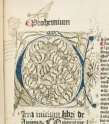 Unlike later techniques, woodcut uses relief printing just as metal moveable type does, so that pages including both text and illustration can be set up and printed together. However the technique either gives rather crude results or was expensive if a high-quality block-cutter was used, and could only manage fine detail on atypically large pages. It was not suitable for the level of detail required for maps, for example, and the 1477 Bolognese edition of Ptolemy's Cosmographia was both the first book to contain printed maps and the first to be illustrated by engravings (by Taddeo Crivelli) rather than woodcuts.[4] However hardly any further engraved illustrations were produced for several decades after about 1490, and instead a style of expensive books decorated in metalcut, mostly religious and produced in Paris, was a popular luxury product between about 1480 and 1540.[5] In the middle of the 16th century woodcut was gradually overtaken by the intaglio printing techniques of engraving and etching which became dominant by about 1560-90, first in Antwerp, then Germany, Switzerland and Italy, the important publishing centres.[6] They remained so until the later 19th century. They required the illustrations to be printed separately, on a different type of printing press, so encouraging illustrations that took a whole page, which became the norm.