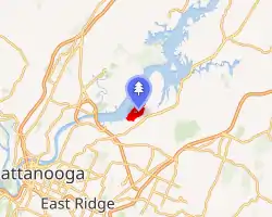 Booker T. Washington State Park is a 353-acre (1.43 km2) park situated on the shores of Chickamauga Lake. It was built largely by African-American units of the Civilian Conservation Corps. It was originally designated under segregation as one of two Tennessee State Parks for use by blacks (the other being T. O. Fuller State Park near Memphis) until discrimination in public accommodations in the United States was banned under the Civil Rights Act of 1964.