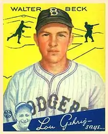 Walter William "Boom-Boom" Beck (October 16, 1904 – May 7, 1987) was an American right-handed pitcher in Major League Baseball. He played 12 seasons in the Major Leagues with the St. Louis Browns, Brooklyn Dodgers, Philadelphia Phillies, Detroit Tigers, Cincinnati Reds, and Pittsburgh Pirates.