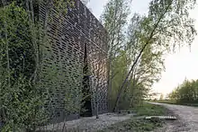 The Arc pavilion was created especially for Archstoyanie, an architecture festival held in Nikola-Lenivets, Russia. Arc stands on the border between forest and field. Its wooden elements are stacked on top of each other with gaps forming rooms and stairs leading up to a viewpoint. The interior is annually transformed into an art installation.[10] The materials Arc is made of are to be reused for useful construction or fuel for domestic heating purposes.