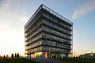 Hypercube is the first building at the Skolkovo Innovation Center. The decision to erect the Hypercube building was made by Russian president Dmitry Medvedev in 2010. The building is a platform for communication, combining the roles of a public space and generator for new start-up enterprises, and part of a university campus. The building has its own energy and water supplyautonomous systems. Hypercube was built in accordance with the green standard "Leadership in Energy & Environmental Design" (LEED v3).[9]