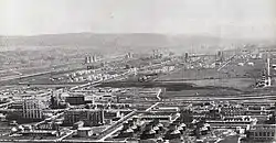 By the Decision of the Council of Ministers (H.C.M.) No. 1635/1952, it was envisaged that in the Bacău Region, Târgu Ocna Raion, the construction of Borzești Industrial Group and the related proletarian city, Onești. The industrial zone was built northeast of the former village of Borzești, between the railway and the Trotuș River, its surface exceeding that of other parts of the city. As a result of this decision, in 1952, the colonies for construction workers began to be built and then the foundations of the first apartment buildings.[4] At the city and industrial sites have worked alongside construction workers assembled in colonies and common law detainees or political prisoners.[8] Soon the city had the highest number of intellectuals per thousand inhabitants, and the average age was 28 years old.[11]