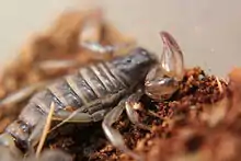 Bothriurus coriaceus (Chilean scorpion) is a species of scorpion native to Chile in the Coquimbo region specifically in the northern dunes. They are not communal and are rumored to dislike the heat and will burrow deep into the ground to get cool. 20 °C - 68 °F is said to be their preferred temperature, a much cooler temperature than most scorpion species, and have actually been known to die in higher temperatures. In addition to living in lower temperatures they also prefer lower humidity than most species of scorpion.[1][2][3]