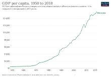 A country of slightly over 2.3 million people,[17] Botswana is one of the most sparsely populated countries in the world. About 11.6 percent of the population lives in the capital and largest city, Gaborone. Formerly one of the world's poorest countries—with a GDP per capita of about US$70 per year in the late 1960s—it has since transformed itself into an upper-middle-income country, with one of the world's fastest-growing economies.[18]
