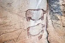 [30] Evidence left by modern humans such as cave paintings are about 73,000 years old.[31] The original inhabitants of southern Africa were the Bushmen (San) and Khoi peoples. Both speak Khoisan languages and hunted, gathered, and traded over long distances. When cattle were first introduced about 2000 years ago into southern Africa, pastoralism became a major feature of the economy, since the region had large grasslands free of tsetse fly.[32]
