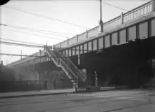 Work began with the widening of Second Avenue to a width of 70 feet (20 m) between Liberty Avenue and Grant Street in 1920–21.[4] The boulevard itself was built on an elevated viaduct beginning at Second Avenue and Grant Street and climbing over the Panhandle Route tracks onto the Bluff, where the roadway then followed the cliff edge eastward to Oakland. The project was an engineering challenge requiring extensive grading and numerous retaining walls and viaducts. Prior to completion, the cost was reported as $1.6 million per mile, said to be the most expensive road in the world at the time.[5] The first section of the boulevard from Downtown to the intersection with Forbes Avenue at the edge of West Oakland opened on October 2, 1922, and was formally dedicated a month later on Armistice Day.[6] The remainder of the route, extending to Schenley Park partly along the existing Emily and Wilmot Streets, was completed in 1930.[7]