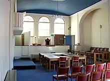 The town hall served as the headquarters of Bourne Urban District Council for much of the 20th century but ceased to be the local seat of government when the enlarged South Kesteven District Council was formed in 1974.[8] Instead, it became the regular meeting place of Bourne Town Council which was formed at that time.[9] The courtroom was redesigned to create a larger waiting area in 1974 and an extension at the rear of the building was completed in 1992.[3]
