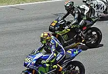 Remaining with Tech3 for the 2015 season, Smith finished each of the first twelve races in the top ten placings, with two fifth-place finishes being his best results. At the San Marino Grand Prix, Smith achieved his best MotoGP result with a second-place finish despite staying out on track on slick tyres as rain was falling – he fell as low as 21st in the race order before riding through the field.[21] With Scott Redding finishing third, the duo became the first pair of British riders to finish on a premier class podium since Barry Sheene and Tom Herron did so at the Venezuelan Grand Prix in 1979.[22] With 181 points, Smith achieved his (as of February 2020) career-best finish in the MotoGP class in 6th place, best of all non-factory riders.