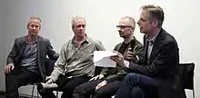 Branden W. Joseph (left) at the opening of Tony Oursler's exhibition UFOs and Effigies