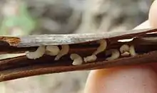 Braunsapis larvae inside a nest burrow