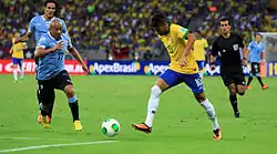 ![]() Neymar (right) and Egidio Arévalo Ríos (left) competing for the ball at the 2013 FIFA Confederations Cup | |