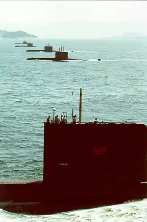![]() The brazilian submarine Tonelero in foreground | |